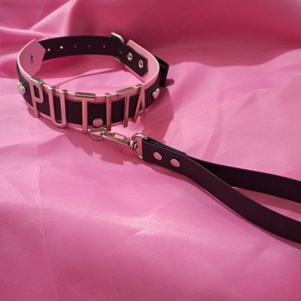 > Base del collar negra o rosa rigida/ blanco, rojo ecocuero fino.